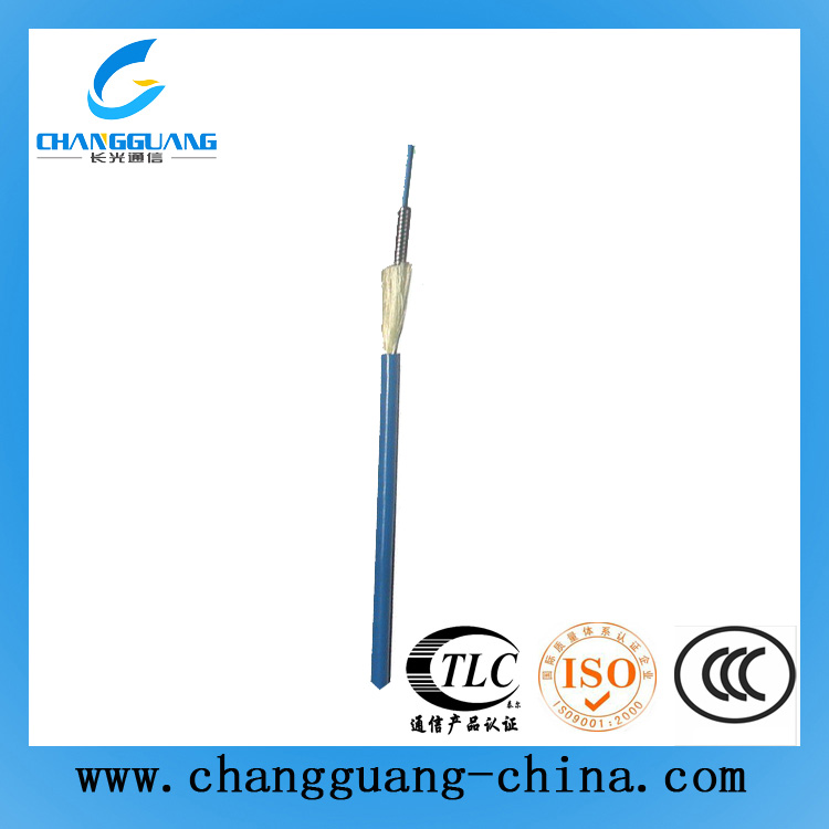 SOC光纜的結構是以由芳綸加強的緊套纖為纜芯,外護一層PVC或LSZH護套,然后繞包或縱包一層金屬軟管鎧裝,并進行銅絲編織保護,最后外護一層PVC或LSZH護套。
